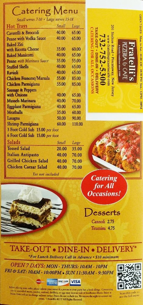 Welcome to Fratelli’s Pizzeria & Restaurant, your go-to destination for a delightful culinary adventure in Piscataway, NJ. Our menu is a harmonious blend of classic Italian comfort food, featuring mouthwatering cheesesteaks, irresistible pizzas, and savory wraps.